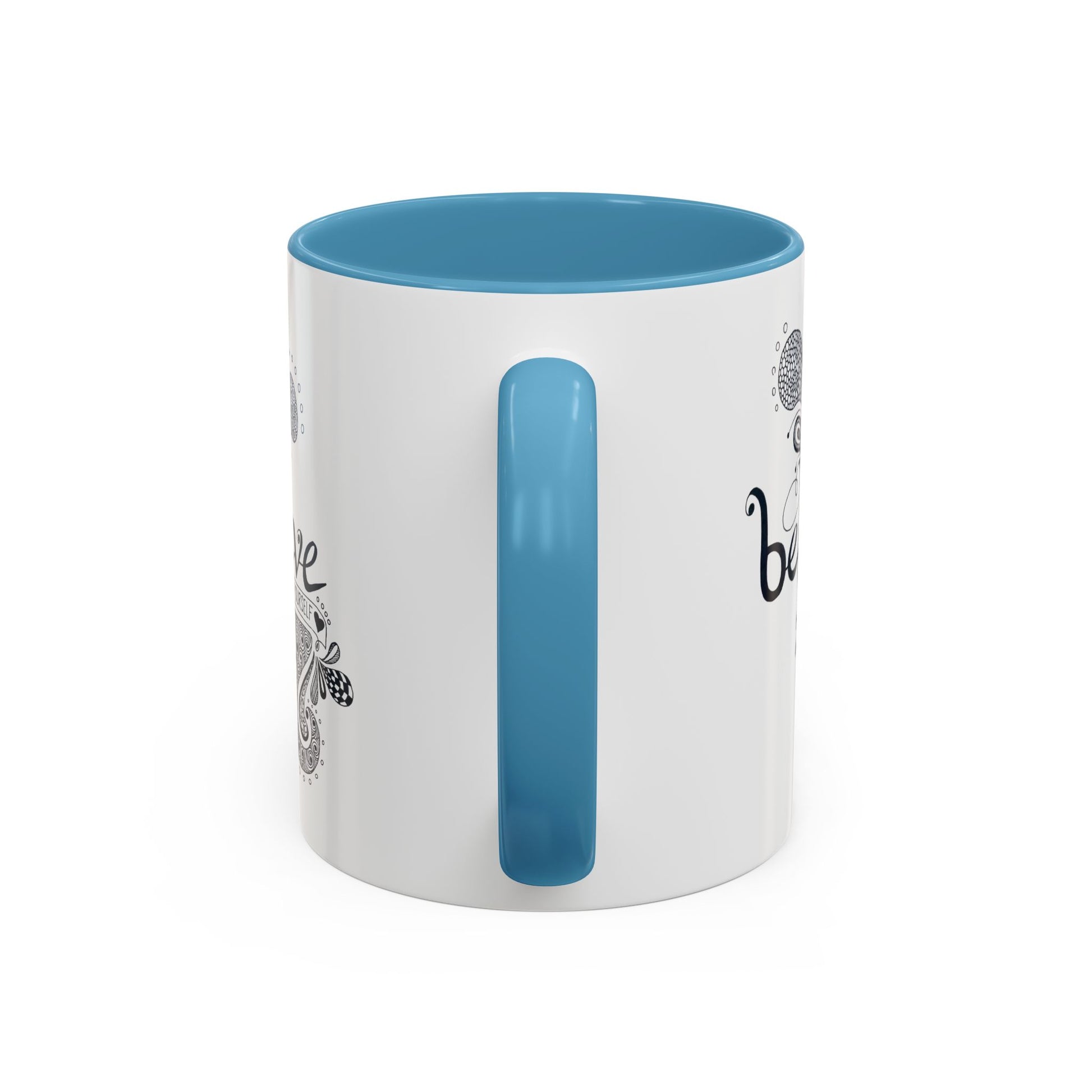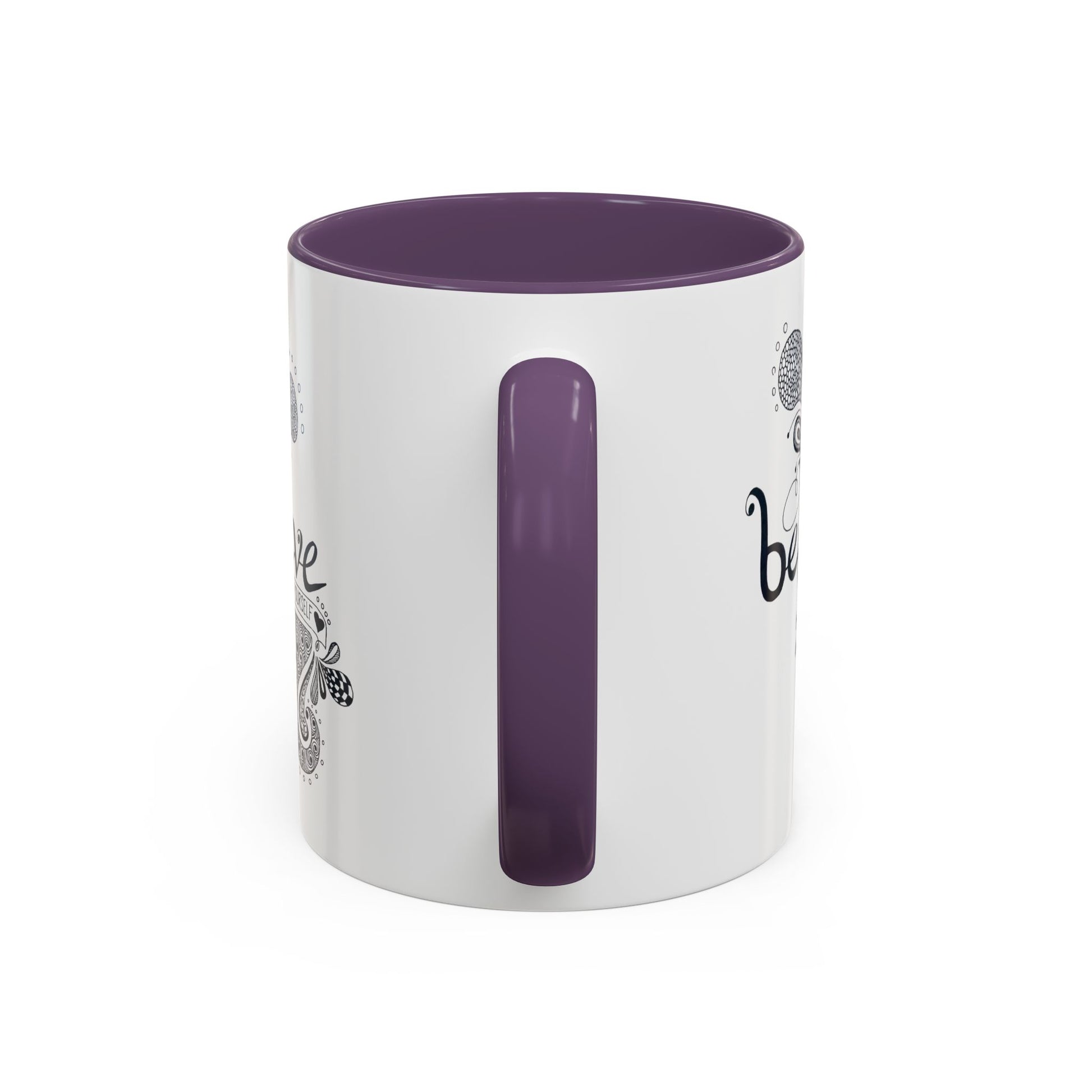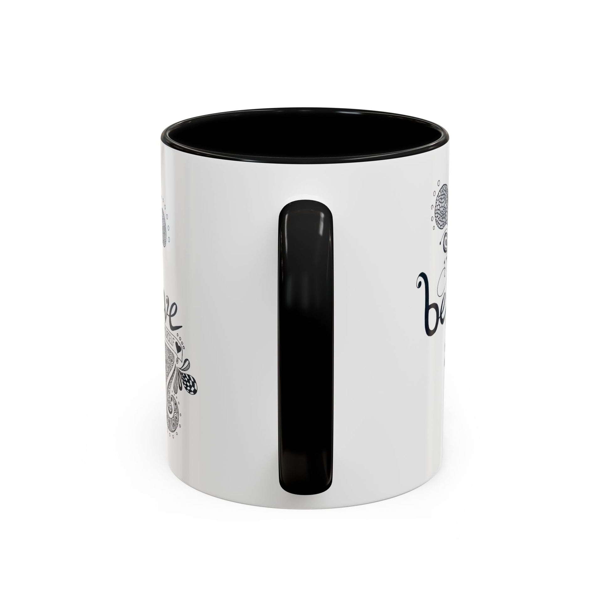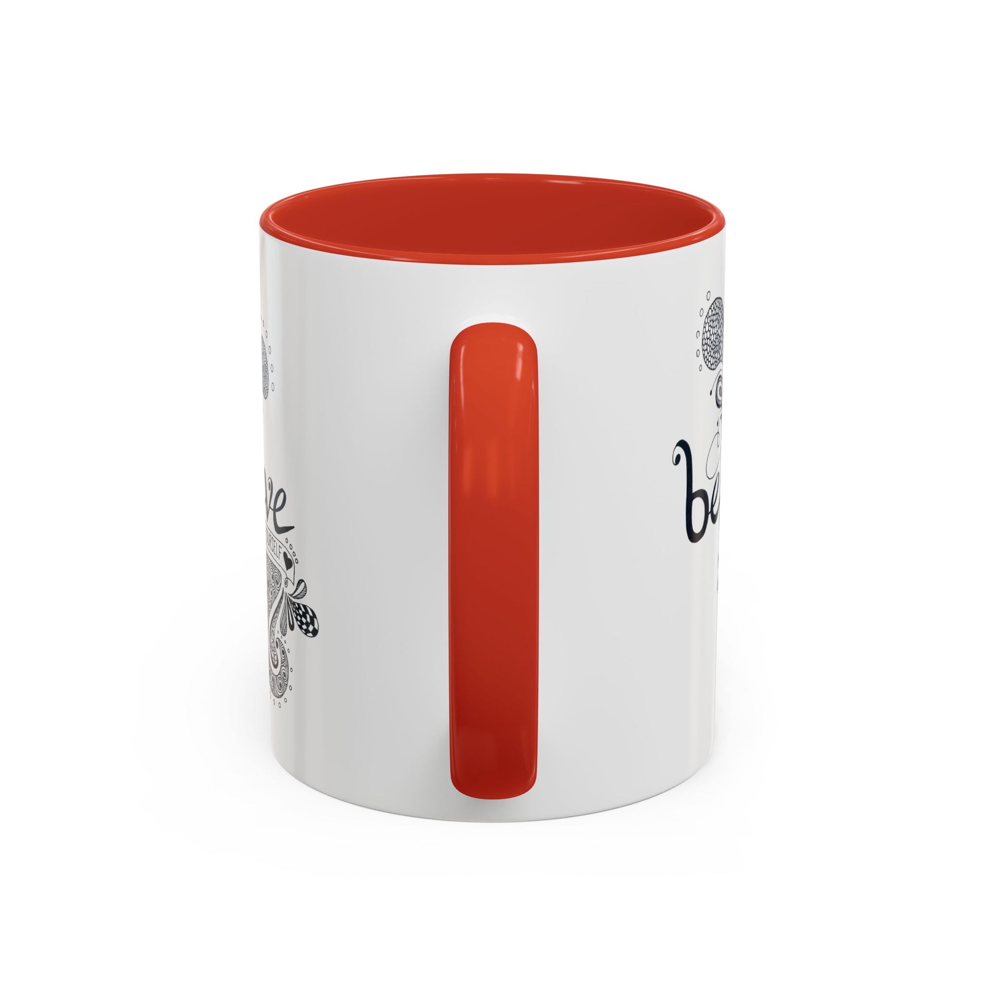 This Accent Coffee Mug features a "Believe in Yourself" black and white Hand-drawn Zentangle art design, perfect for those seeking motivation and inspiration in their daily lives. This mug is suitable for both microwave and dishwasher use, with vibrant colors and eye-catching color contrast. It is made of white ceramic with a colored interior and handle, giving it a glossy finish. Available in two sizes and multiple color options, this mug is lead and BPA-free, making it a great gift for any occasion.